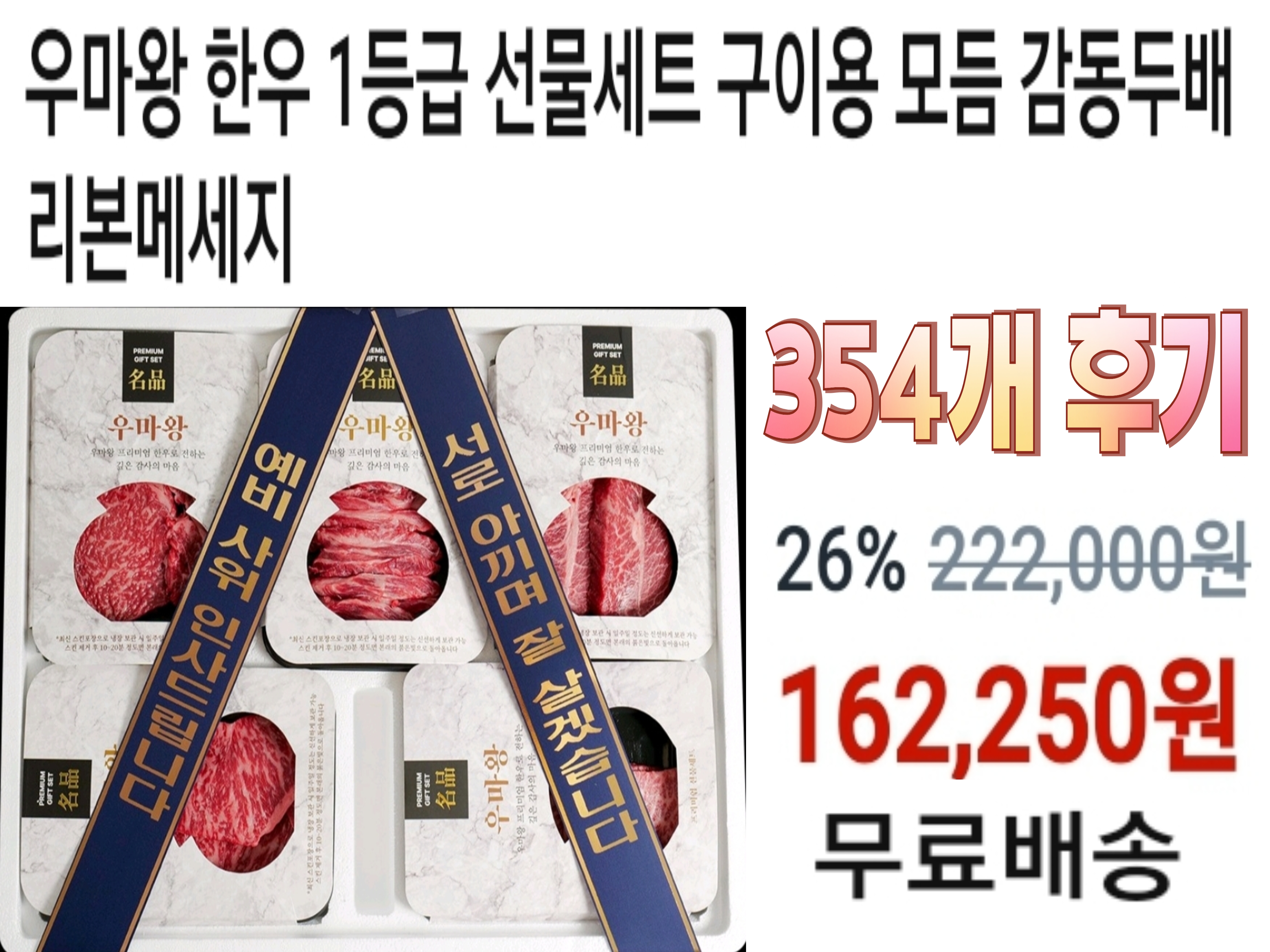 우마왕 한우 1등급 선물세트 구이용 모듬 감동두배 리본메세지